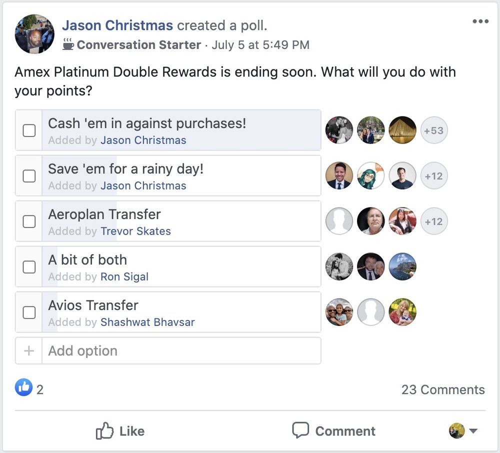 Great article. I find the cash out question an interesting psychological problem. Lots of people are hesitant to cash out their Amex points at 2cpp but at the same time very few people are interested in buying Avios or Aeroplan points at 2cpp. ( essential the same thing ).