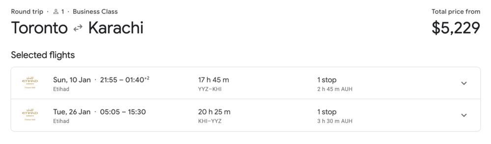 The best part? You can emulate an Aeroplan redemption by adding a stopover in Abu Dhabi in either direction of the paid fare as well, for a very small increase in the fare: