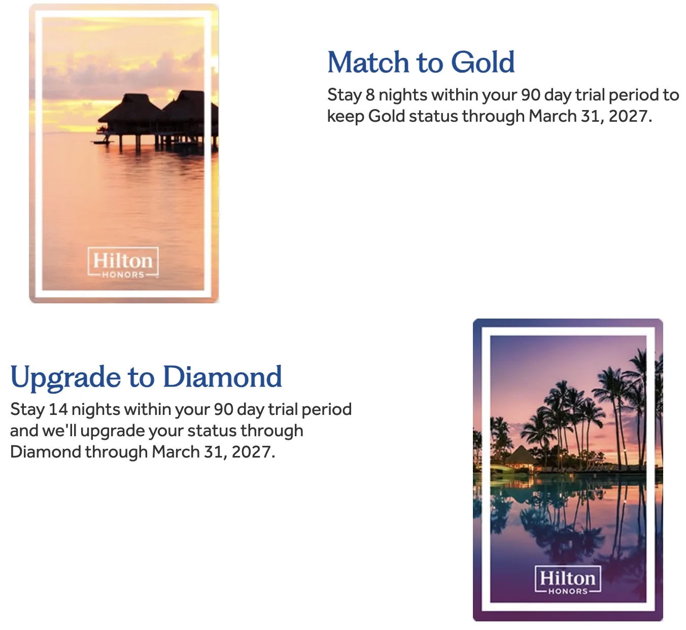 Hilton offers a chance for those who hold elite status with a different hotel loyalty program to try Hilton Honors Gold status for 90 days.