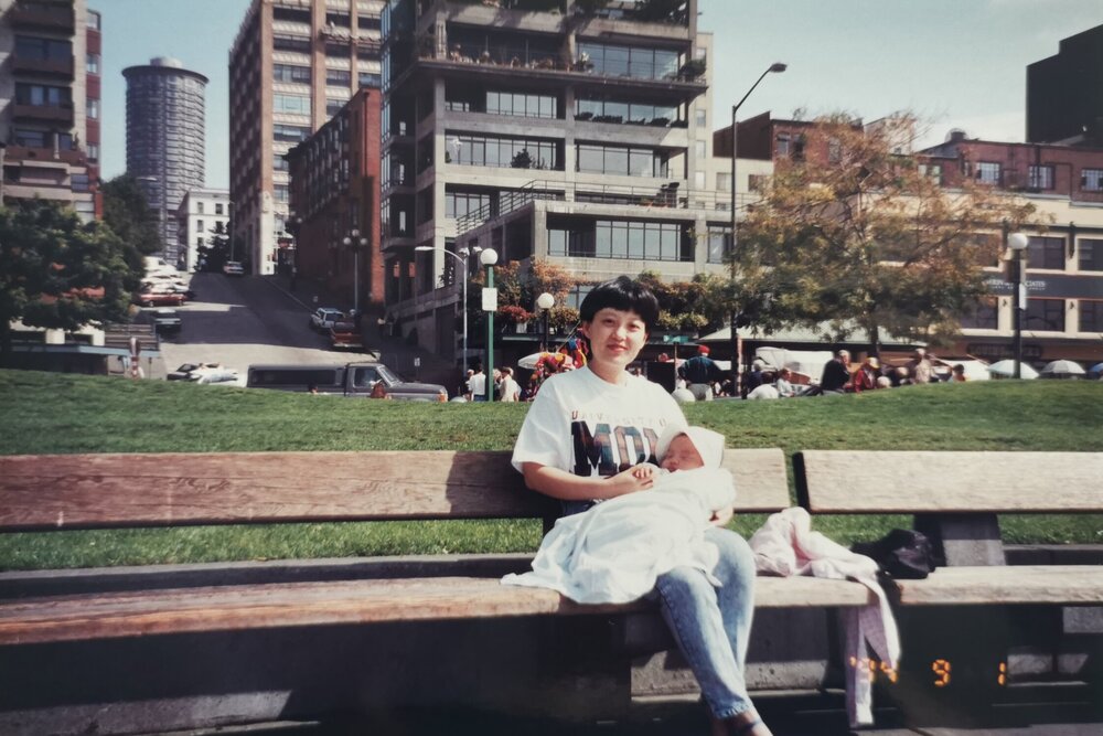 Just kidding – I was a baby, and I wasn’t about to discover the best of Seattle until 22 years later. Instead, I think I mostly just napped during the trip, as I’m doing here while my mum is sitting pretty in Victor Steinbrueck Park.