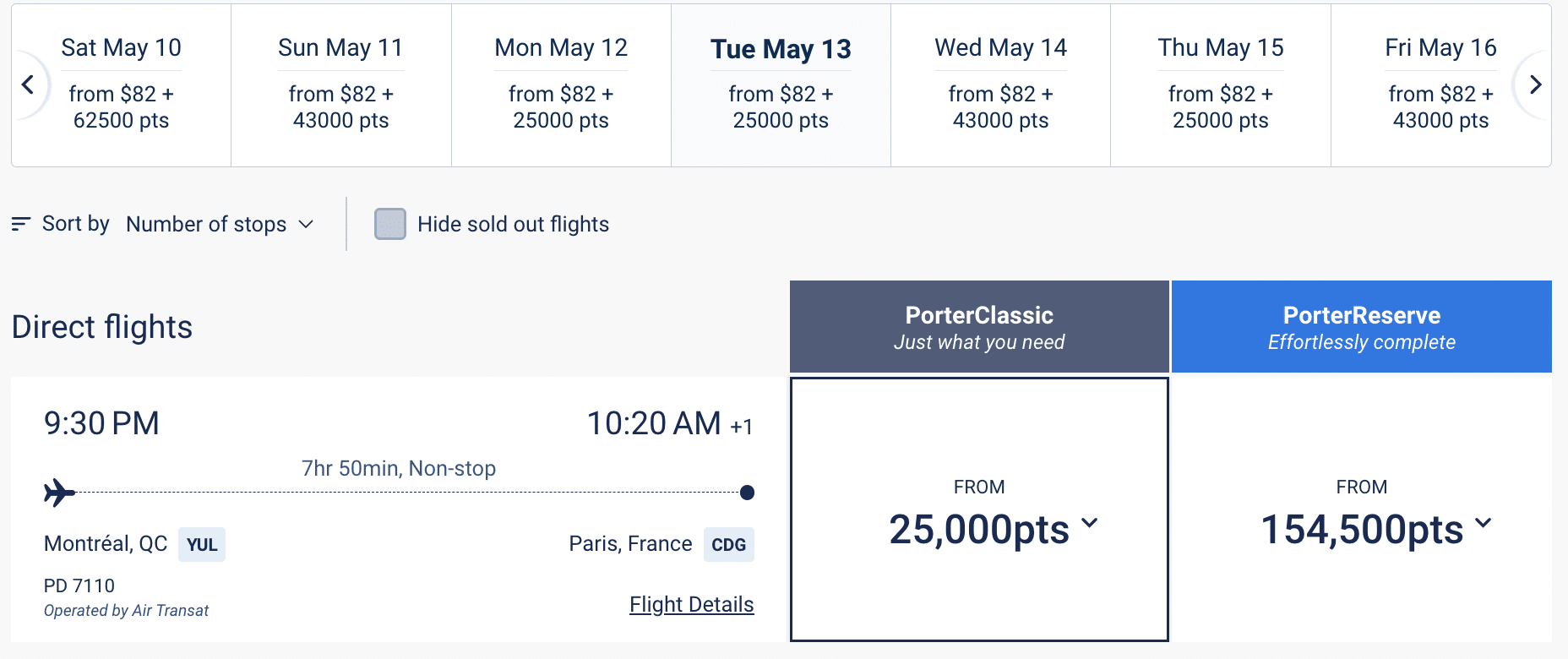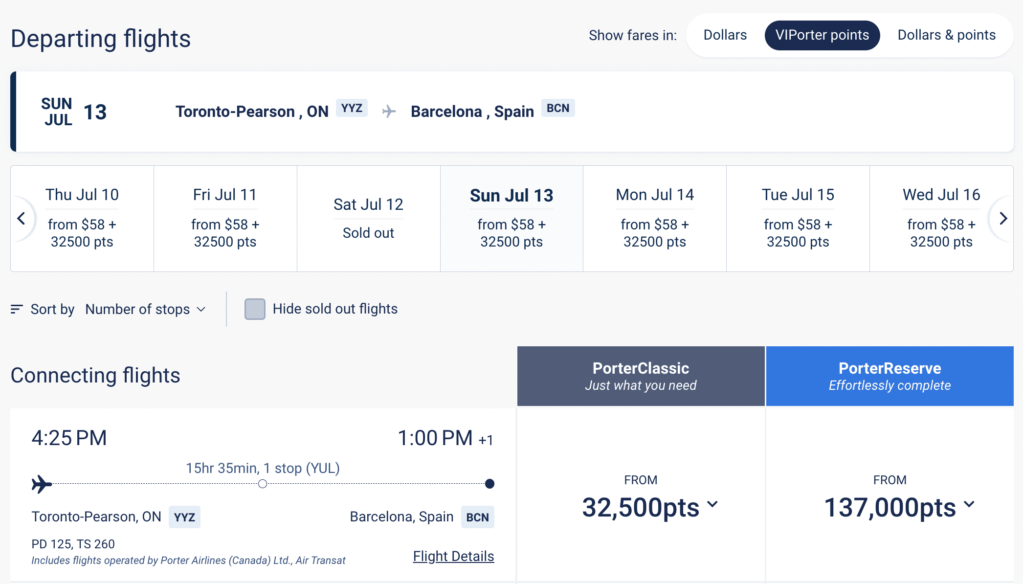 In some cases, the system forces a layover in Toronto or Montreal on a Porter flight before continuing on Air Transat, even when a direct Air Transat flight exists from the origin airport.