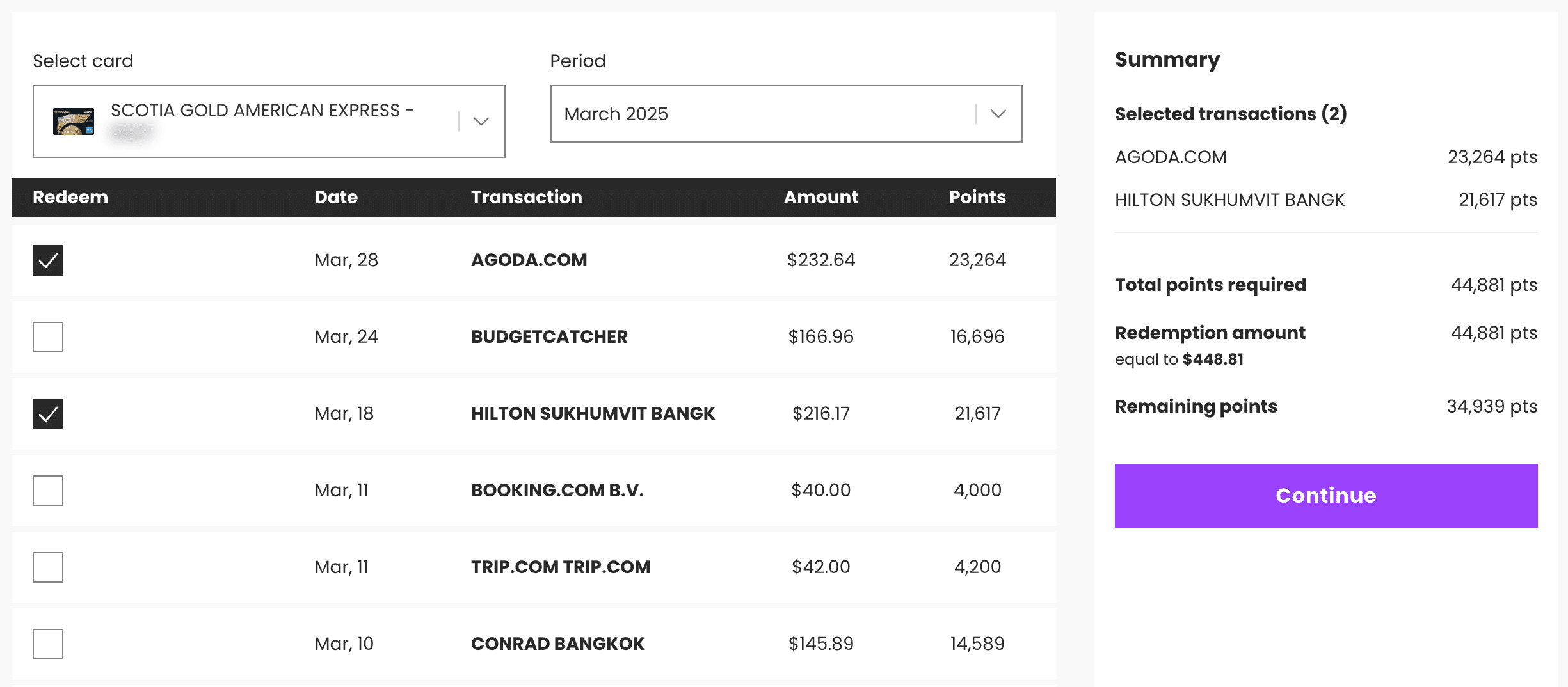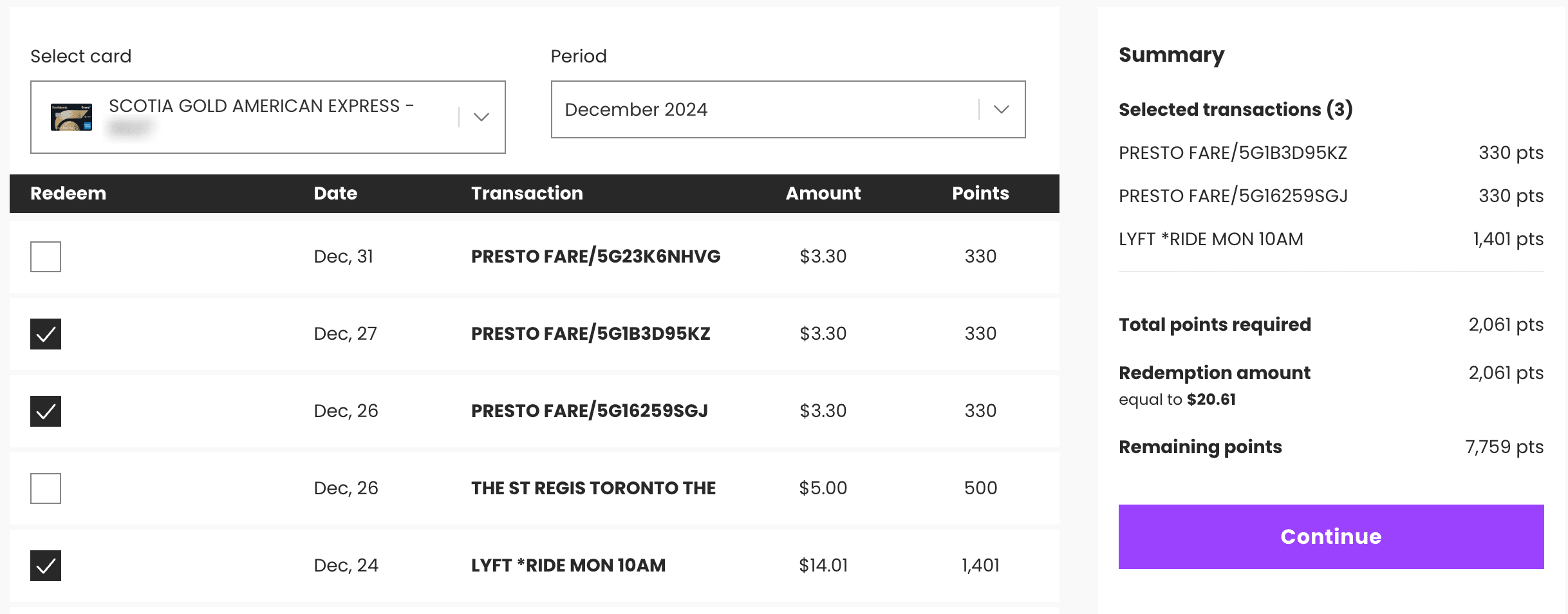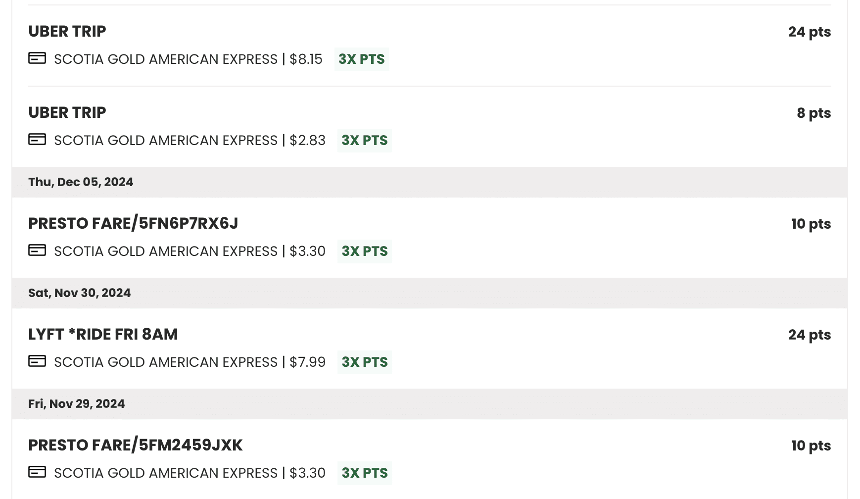 Even better, you can later redeem Scene+ points to offset many of these transit charges—more on that in the redemption section.