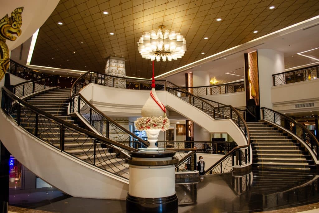 The lobby at The Athenee Bangkok is grandiose, with a gorgeous grand staircase set as the main attraction.