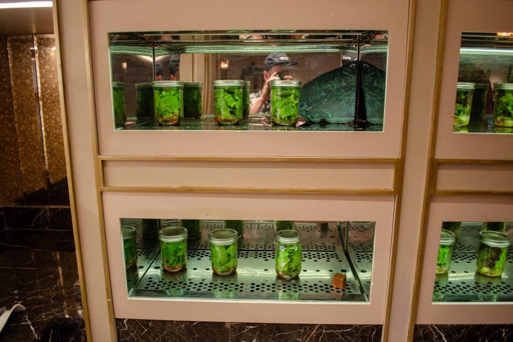 This space is a part of a larger conservatory, and surrounds its guests with greenery in all directions.
