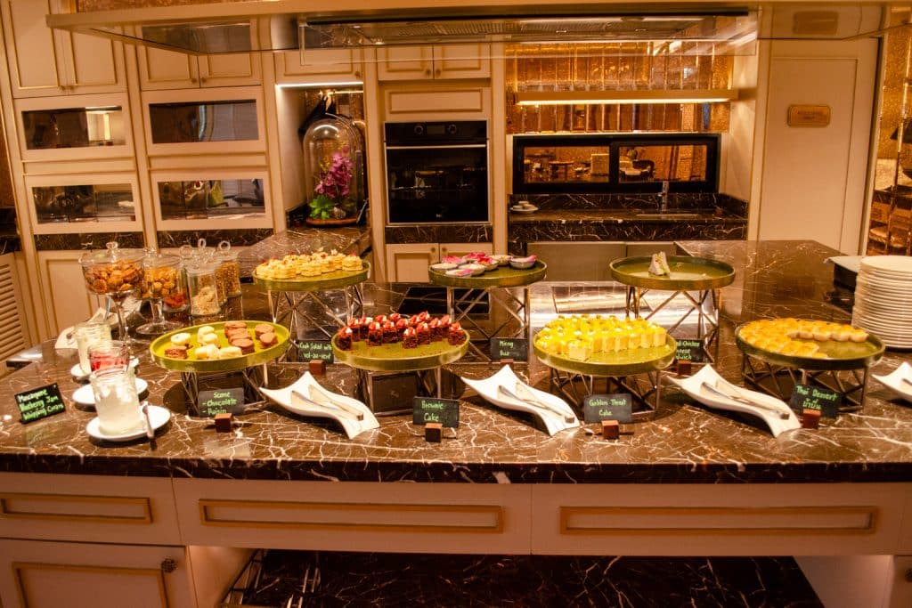 The restaurant features cuisine from across the world, with plenty of variety to appease a wide range of guests. There’s a particular focus on seafood for the dinner service, which is when crab legs are available from the buffet.