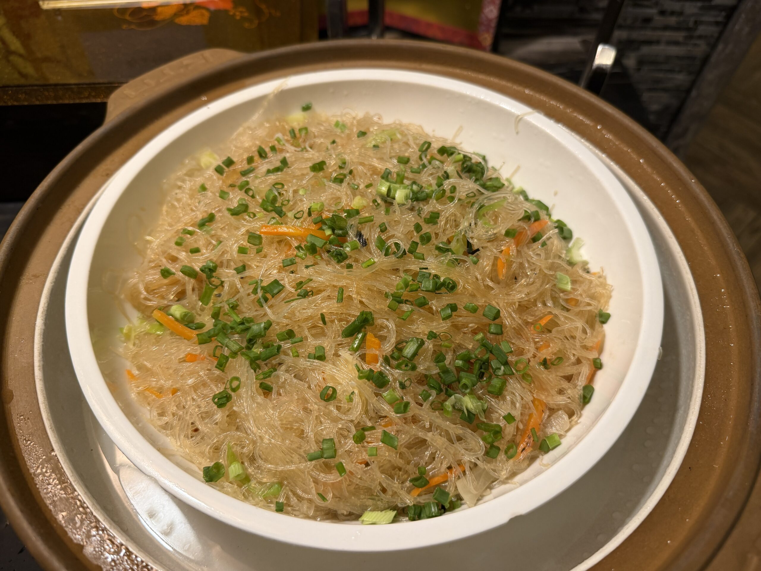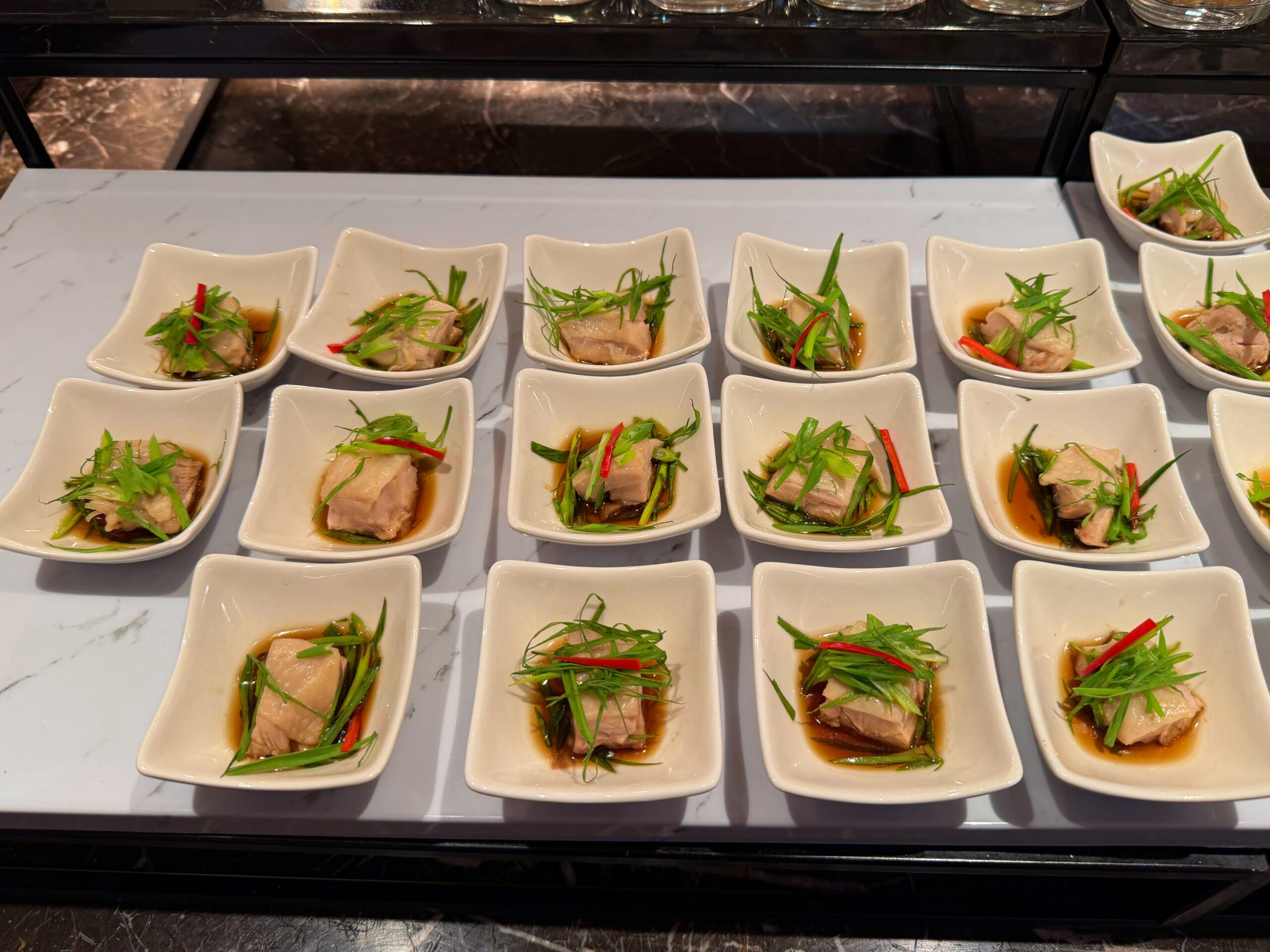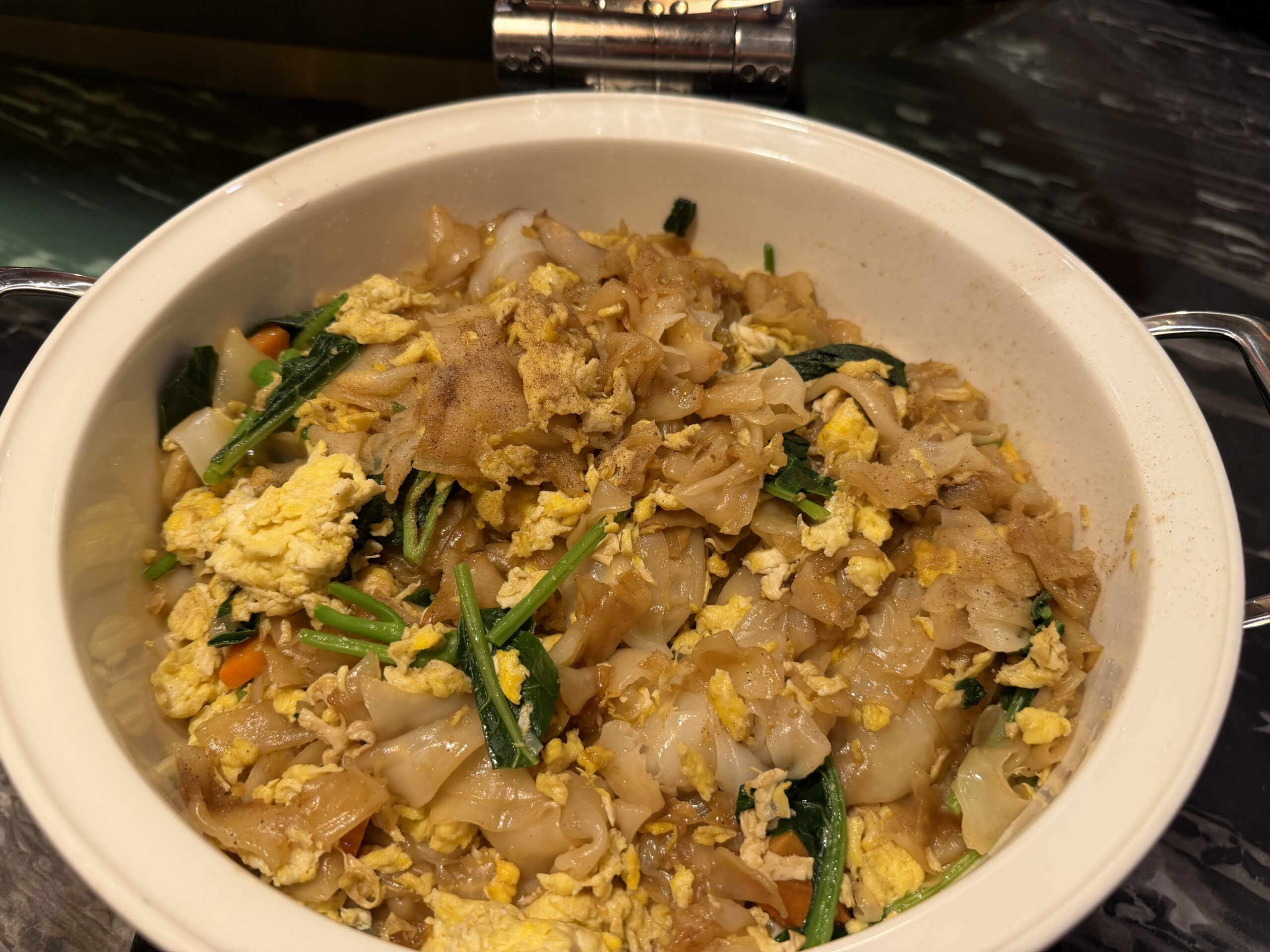 At the noodle station, a chef prepares bowls of laksa to order. You choose your noodles, vegetables, and toppings, and everything gets assembled in a fragrant, mildly spicy broth – a great alternative to the buffet trays.