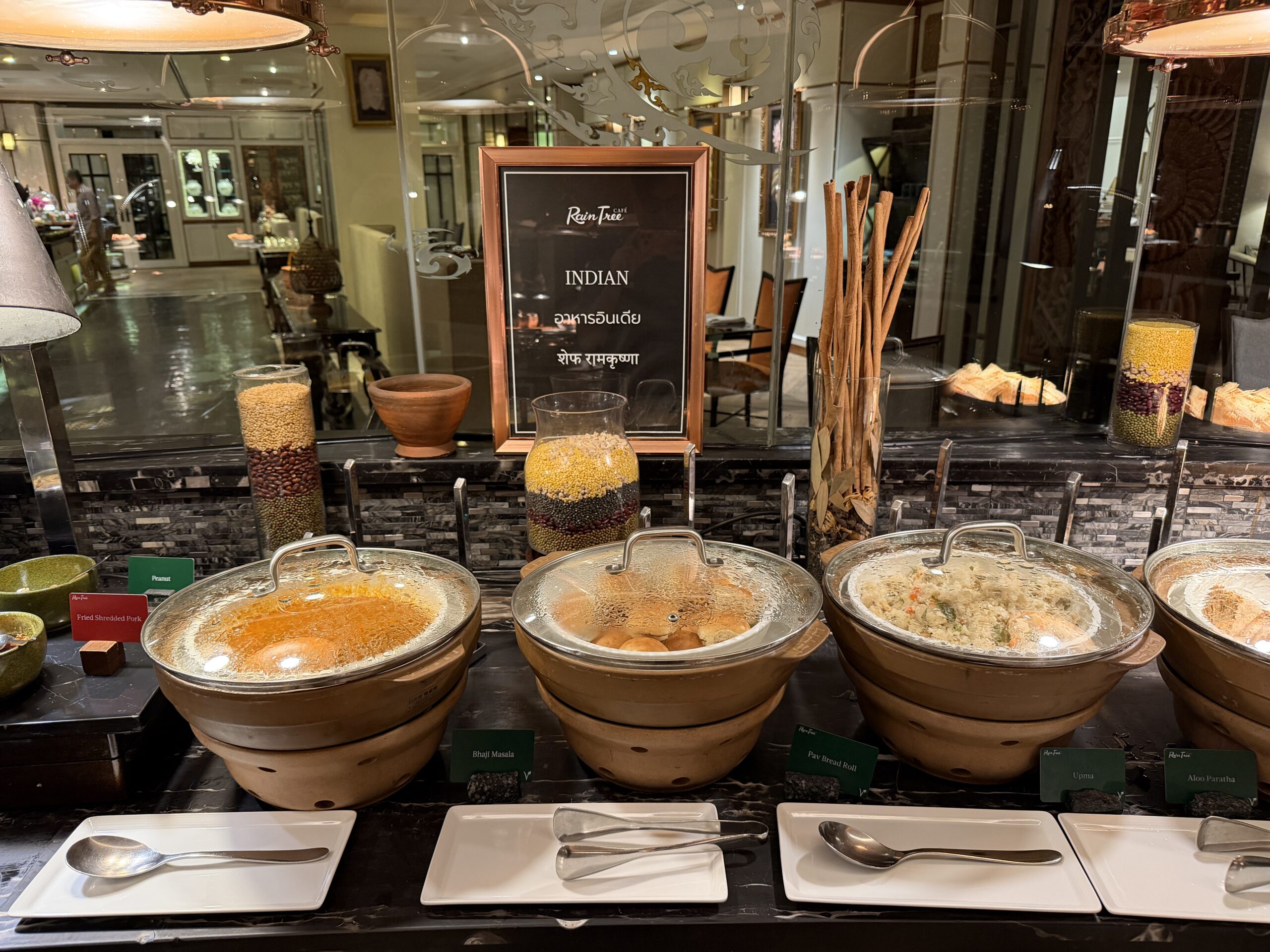 Breakfast is served downstairs at The Rain Tree Café, and it’s absolutely worth leaving the lounge for.