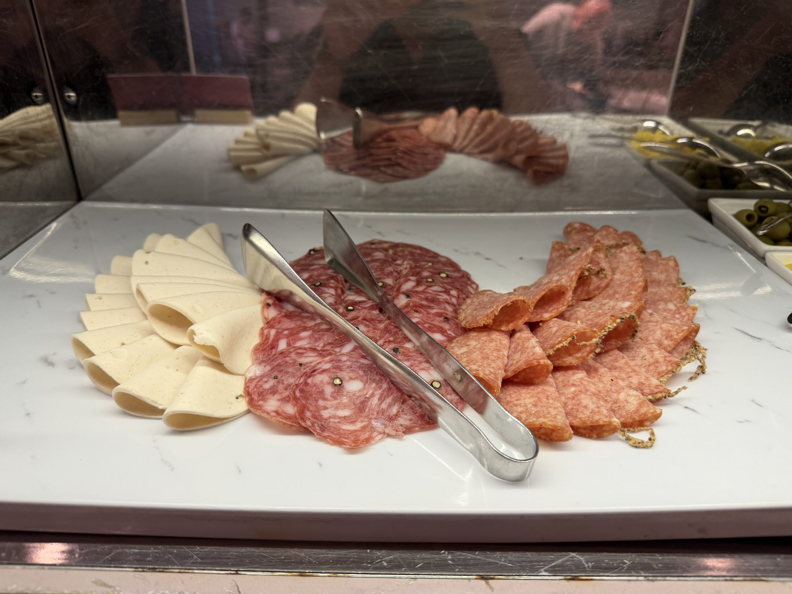 Just off the bakery corner, there’s a generous cheese and cold cut station. You’ll find sliced Emmental, local halloumi, feta, and a couple of vegan cheese options, plus walnuts and dried fruit if you want to build a proper breakfast board.