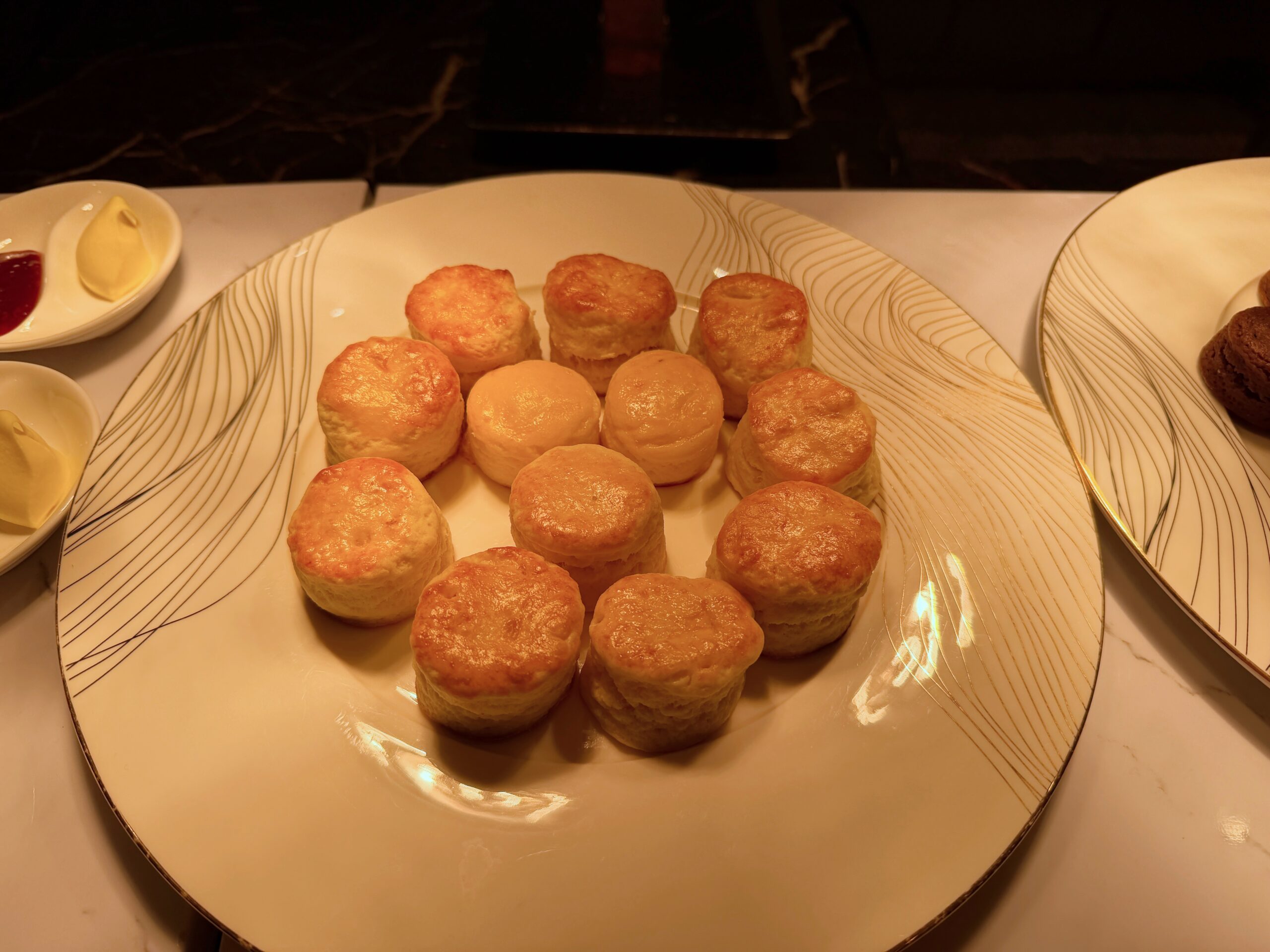For afternoon tea, the lounge rolls out a surprisingly substantial spread. There’s a mix of savoury bites – think mini sandwiches, charcoal buns stuffed with salad, and little plates of grilled beef and veggies – alongside plenty of sweets, including cakes, brownies, cookies, dried fruit, and scones with clotted cream and jam.